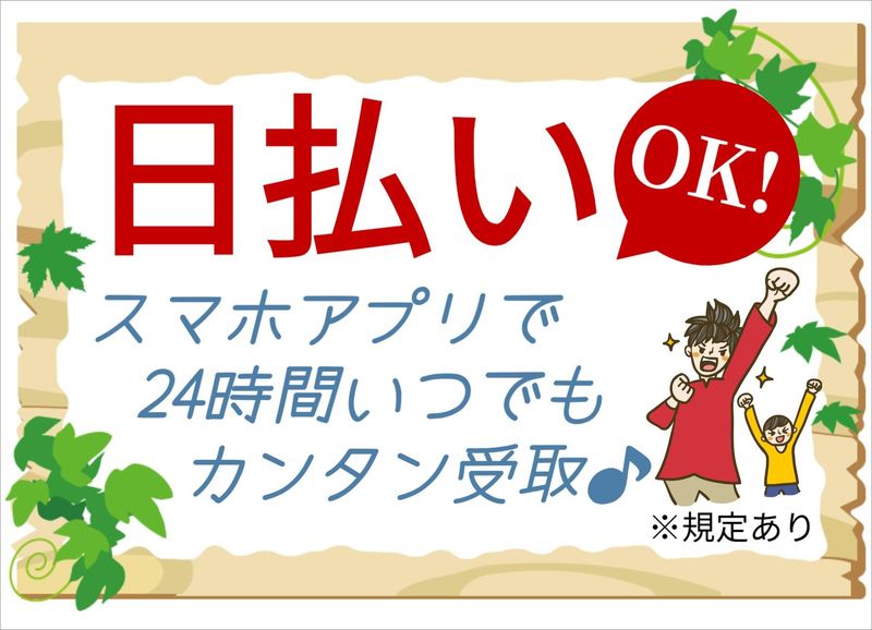 給与 | 時給1,250円 給与詳細 基本給:時給 1250円 *交通費500円/日(規定) *給与受取方法:「日払い」、「月払い」から選択 日払いOK!(スマホアプリで24h365日いつでもカンタン受取♪ ※規定あり) 【給与例】 給与例 【月収例】 時給1250円×8時間×20日稼働+残業代+交通費 =月20万円以上可能! |