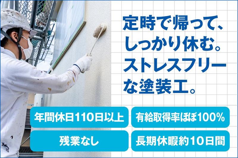 職種/仕事内容 | 仕事内容 資格なし、経験ゼロ。 でも手に職つけたい方大歓迎! 「見て覚えろ」と言いません。 イチから立派な塗装工になれるよう、 丁寧にお教えします! //////ここがポイント!////// ・お休みはしっかり取れます! 年間休日110日以上、 夏季・年末年始休暇は約10日間ずつ、 有給休暇の取得率ほぼ100%! ・残業はありません! 現場は日が暮れると作業できないため、 残業をすることはありません! ・無資格スタートでも資格取得が可能! 会社の福利厚生で資格取得費用は 全額会社負担! ・給与体系は日給月給制など 柔軟に対応いたしますので、 お気軽にご相談ください♪ //////////////////////////// <具体的な仕事内容> 主に一般住宅など建物の外部・内部の 塗装をお願いします! ■作業の流れ 高圧洗浄機などを使用して、 塗装前の外壁の汚れ落とし ↓ 塗装をする箇所以外に塗料が つかないように養生を行う ↓ ローラーやハケなどを使用して 塗装作業 ↓ 完成! ■塗装を行う建物は? 主に一般住宅がメインです! 塗装する場所は外壁だけでなく、 屋根などお家の塗装がある場所です。 ※足場設置作業はありません! ■現場はどこ? 主に金沢市内とその周辺がメインで、 遠方でのお仕事はほとんどありません! ■入社後まずは何する? 未経験の方はまず、 ・荷物運び ・作業後の清掃 ・先輩社員の手元補助 からスタートし、 徐々に塗装スキルを身につけていただきます! 塗装作業を始めるときは、 いきなり1人でお任せすることはなく、 先輩社員が横につきながら、 丁寧にご指導いたしますので、 未経験でもご安心ください♪ ■仕事のやりがいは? やっぱり一番のやりがいは、 塗装作業が終わった完成した家の姿を 見たときです。 初めて自分の手で 丁寧に塗り上げた塗装を見たときは きっと感動しますよ! |