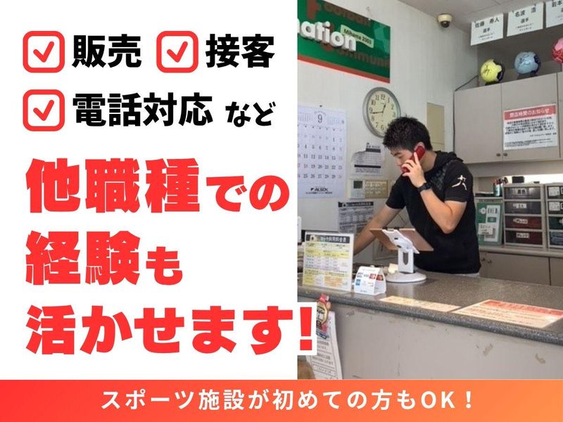 対象となる方 | 求めている人材 【必須条件】 ⏩高卒以上の方 ✨未経験者歓迎 ✨無資格歓迎 ✨大学生歓迎/大学生OK ✨フリーター歓迎 ✨副業・WワークOK ✨ブランク歓迎/ブランクOK ✨経験者歓迎 ✨学歴不問 ✨経験不問 ✨長期歓迎 ⭐大学生・フリーター・Wワーカーなど、 20~30代を中心に和気あいあいと活躍中♪ \\ こんな方にオススメ! // ✅スポーツが好き、経験がある ✅施設や店舗の運営に興味がある ✅経験を活かして働きたい 今回募集するお仕事では 【営業】【販売】【接客】【レジ打ち】 【清掃】【電話対応】【接客販売】 などの経験が活かせます! |