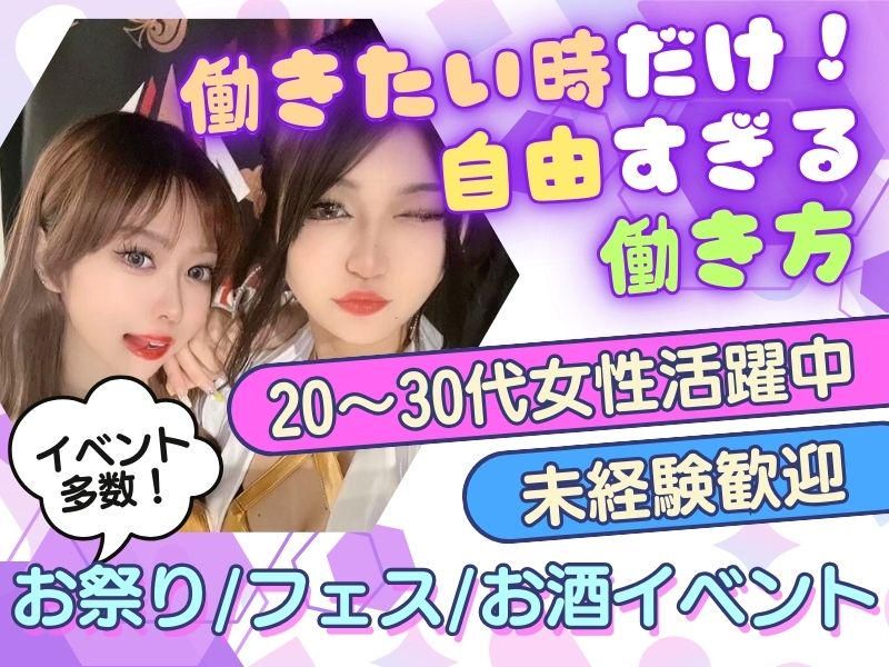 対象となる方 | 求めている人材 ⇒⇒こんな方にオススメ! ✨カワイイ衣装でバチっとキメて働きたい ✨イベントのキラキラ空間がスキ ✨楽しみながらガッツリ稼ぎたい ✨映え仕事したい!って思ってる ✨普段じゃできないオシャレしたい ✨フリーランスとして働きたい ✨本業に+で働きたい(Wワーク大歓迎) ✨自分の好きなタイミングで働きたい(週0~OK!) ひとつでも当てはまれば、ほぼ“適性MAX”です♡ 経験は一切不問! 「楽しく働いて稼ぎたい」 それだけでOKです(^_-) ※喫煙可能区域での勤務のため20歳以上の方 |