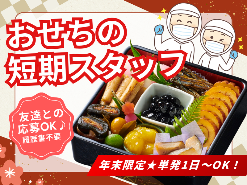 職種/仕事内容 | 仕事内容 \12/24~30の7日間限定★年末短期!/ ⭐年齢不問◎70代シニアも活躍中! ⭐稼げる高時給!皆勤手当あり♪ ⭐フル勤務で8万4000円の収入☆ ⭐1日だけでもOK! ⭐友達と一緒の応募も歓迎!履歴書不要◎ =================== 年末限定の短期!! おせちの梱包など、軽作業スタッフを 募集します。 =================== ✅重いものナシ!力仕事ナシ! ✅食材は触りません♪ ✅カンタン流れ作業で安心◎ 【 仕事内容 】 完成済みおせち商品の ■箱詰め ■シール貼り の簡単なお仕事です。 \未経験者歓迎♪/ 簡単ライン作業で未経験者も安心◎ 食品を触ることもないので、 汚れやにおいとも無縁です。 コツコツ・もくもく作業のお仕事! 日数はお気軽にご相談ください。 履歴書は必要ありません。 出張面接OK! 友達と一緒に応募もOKです! お気軽にご応募ください♪ |
