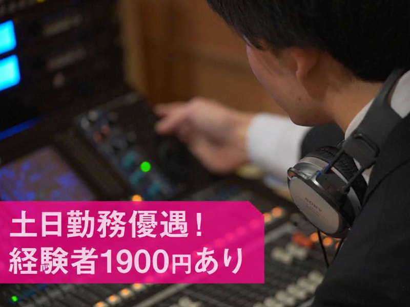 職種/仕事内容 | 仕事内容 【仕事内容】 ・音響・照明・ 映像・ライブ配信等のオペレーション ・機材の設営や操作、撤去などの業務 ・BGMの打ち合わせ業務・事務作業 ◎勤務中スーツ着用(ホテルにより更衣室有) ★東京、神奈川、千葉にも勤務地があります。 弊社は結婚披露宴、会議、イベントなど多岐にわたる業務をホテル様と連携して行っておりますため、自分の好きを活かして働くことが可能です! |