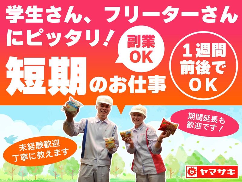 職種/仕事内容 | 仕事内容 ラベル貼り付け・パック詰め・仕分けなど 初めての方も安心のカンタン作業です。 <秋・大増員> <期間>面接翌日~12月末まで 期間内で1週間前後の短期勤務できる方大募集! 希望日を気軽にご相談ください! 日数の延長や長期への変更も歓迎! 国内トップクラス食品メーカー「ヤマザキパン」だからこそできる、 働きやすい環境が整っています。 未経験の方でも安心してスタートできるように 丁寧で細やかな作業説明があるのはもちろん、 困ったときはすぐに先輩スタッフや社員がフォローできる体制です。 また業界をリードしていく大手メーカーとして コンプライアンス遵守を徹底していますので、 安心して長期で働いていただくことも可能です。 |